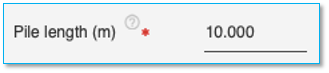 Specify the pile length here in the units chosen. After selecting the pile cross-section, this should be the first item to be entered on this page. This field is mandatory for all pile cross-sections.