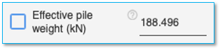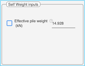 The “self-weight” of the pile consists of pile weight and plug weight and is taken from the ‘Self weight inputs’ pane in the ‘Pile Properties’ tab.